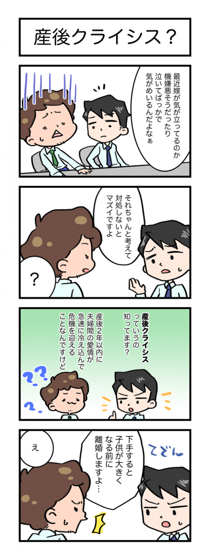 我が家は私の仕事復帰を機に勃発した感じですね。仕事に家事に子供の面倒に、と育休中にのんびりしすぎていたので、そのギャップにヤられました。旦那よりも子供と家事と自分のことで手一杯!!自分のことくらい自分でやってよ!となったわけです。
