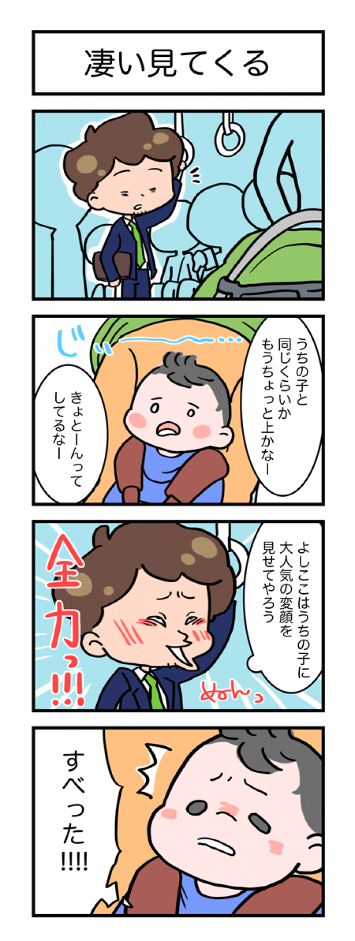 乳幼児は視力がまだまだ発達途中なので、一点をじーーーーーーっとみたりすることが多いですよね。視力1.0くらいになるのは3歳頃だと言われています。なので、今回のマンガのようなことがあってもヘコまないでくださいね。