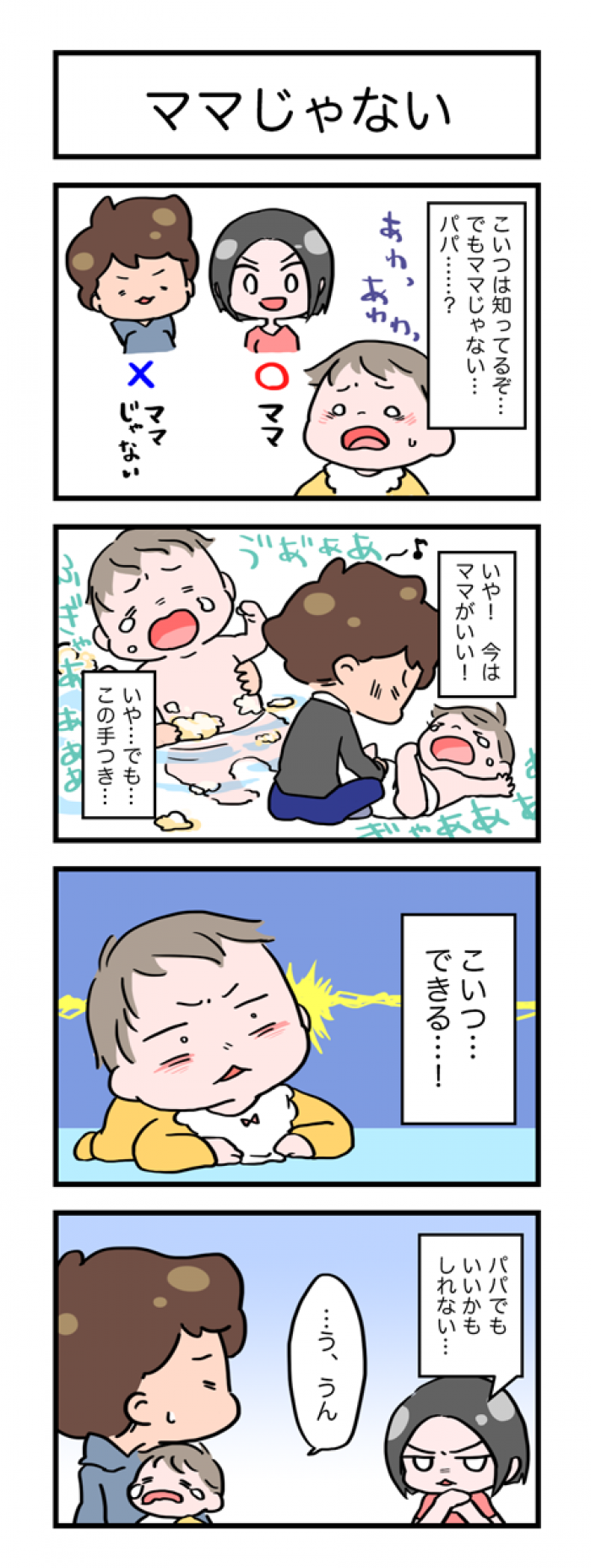 最初はママがどうしても一緒にいる時間が長くなります。ママじゃなきゃだめのことが多いでしょう。パパは赤ちゃんと一緒にいるときは積極的に赤ちゃんのお世話をしましょう。次第に慣れて行きますよ。